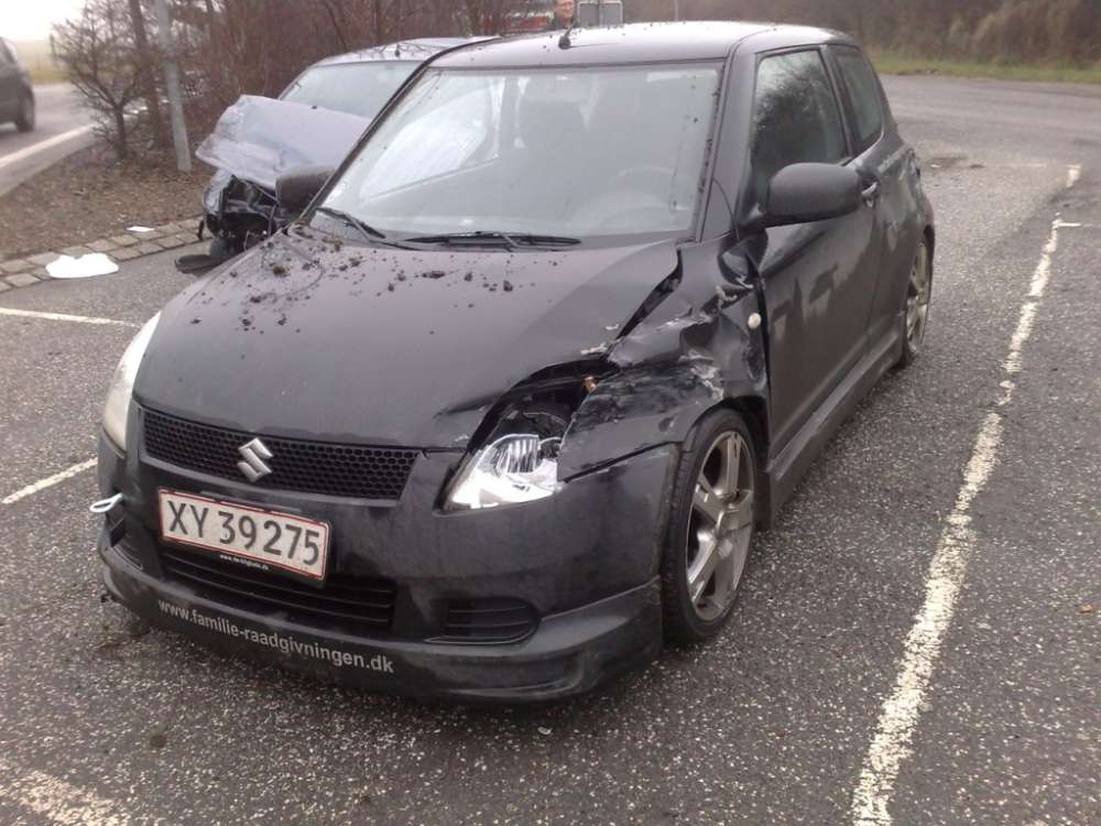Beskrivelse: Søndag den 16. december skulle swiften luftes og det gik desværre galt da der var en der valgte at trække ud i højre vognbane, på motorvejen, ca. 50 før jeg lå på siden af ham. Det gav dette resultat. Det skal lige nævnes at det var spejlglat og jeg derfor lå med ca. 80 på motervejen og ingen mulighed havde for at undgå uheldet men der er ikke sket de store personskader.