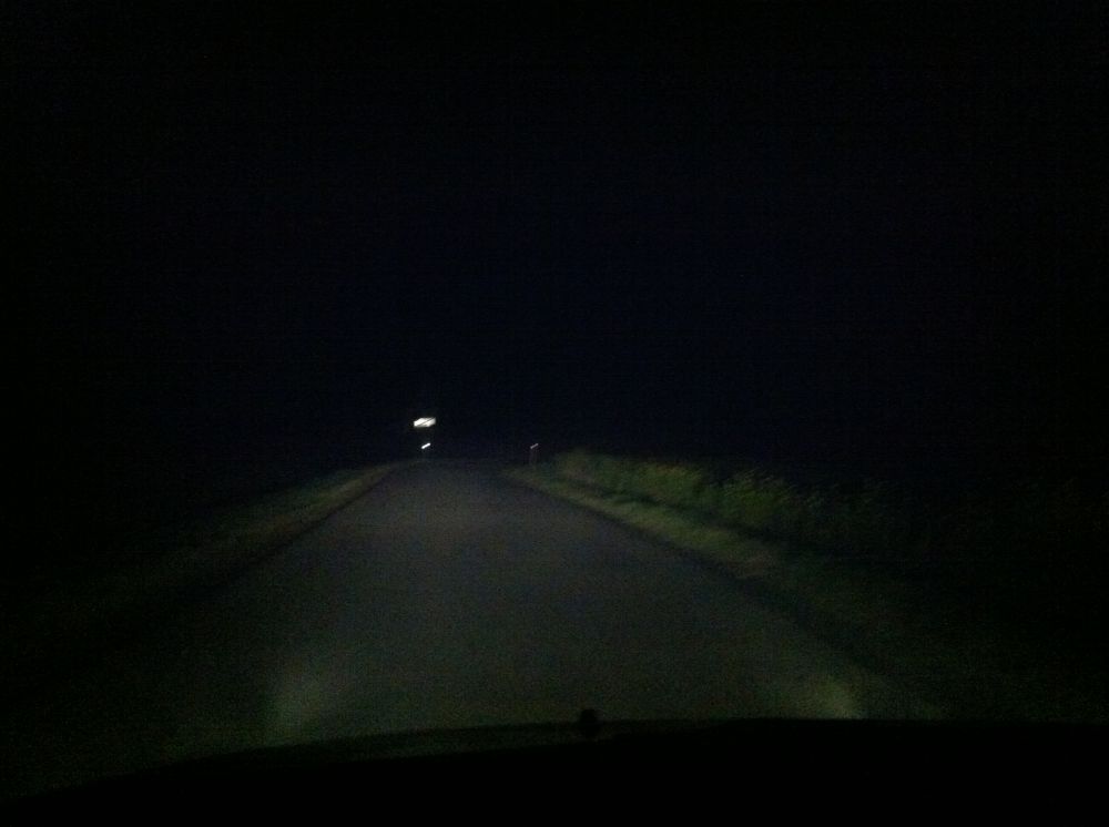 Beskrivelse: Det skal lige siges at jeg holder skævt på vejen så det er ikke fordi at pærerne lyser mere til højre end standard. Billederne er med nær- og fjernlys med henholdsvis osram nightbreaker plus og standard. De 2 første billeder er med osram.